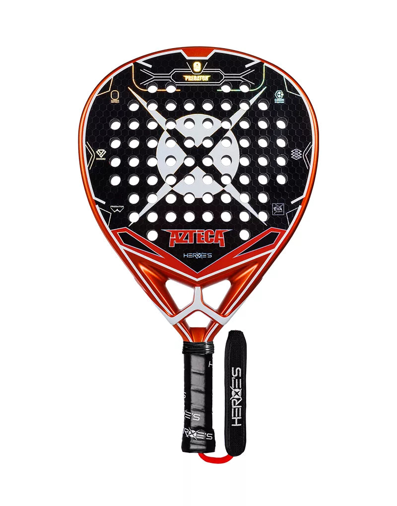 AZTECA, la innovación de Heroe para 2025, inspirada en la fuerza y majestuosidad de la cultura azteca. Diseñado para el jugador Gonzalo Rubio, con forma de diamante, AZTECA ofrece un juego potente y de alto rendimiento sin comprometer el control. Es ideal para jugadores profesionales y experimentados. La tabla está hecha de carbono 12K, mientras que el núcleo SUPER SOFT EVA ofrece un tacto excepcional y un gran retorno de energía. Además, el puente VibraX reduce las vibraciones, protegiendo el brazo durante las fases más intensas del juego.