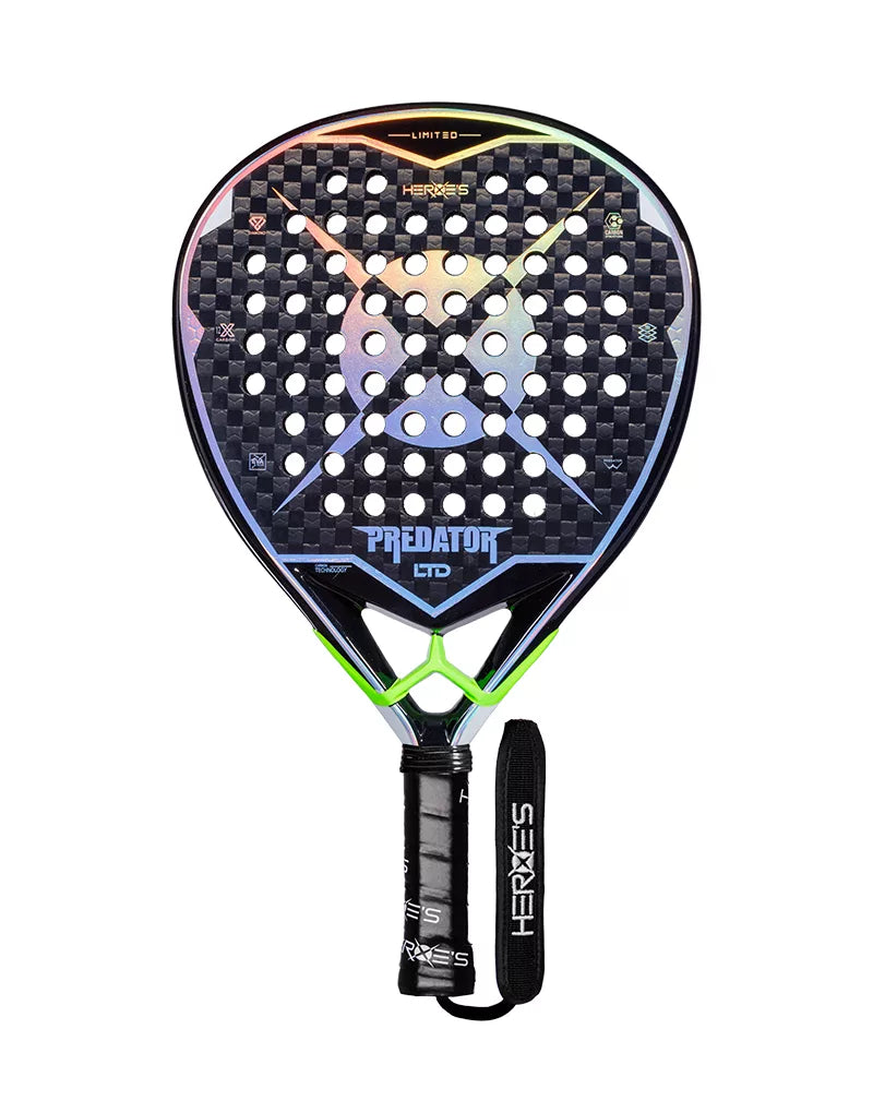 Descubra PREDATOR LTD, edición limitada que celebra la historia de Heroe's y marca 7 años de actividad. Con su encantador diseño en verde neón y negro, esta pala combina elegancia y rendimiento en la pista de pádel.